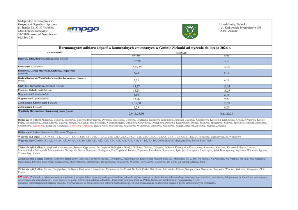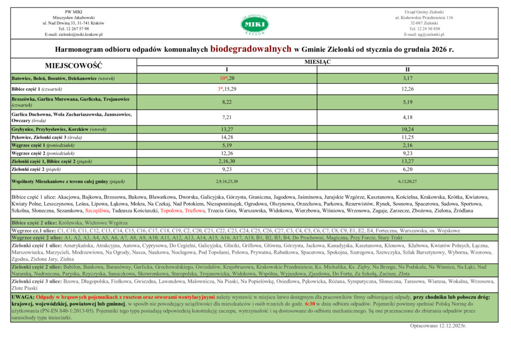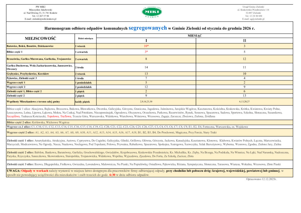 Dzisiaj na stronie naszej Gminy zostały opublikowane harmonogramy wywozu odpadów dla dwóch pierwszych miesięcy 2026 roku. Link: Zielonki.pl